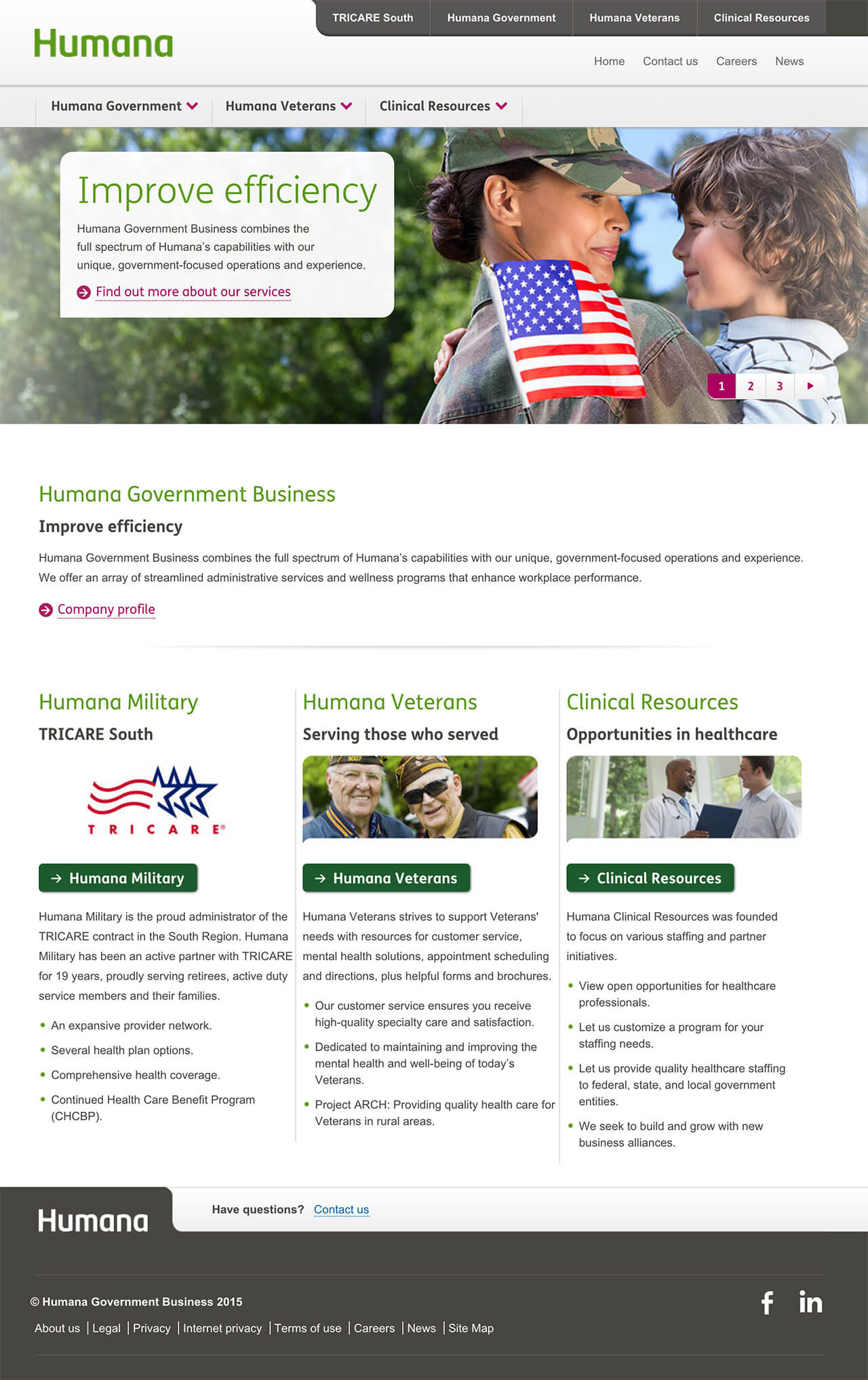 A website development project for the government business segment of Humana. This site required a complete design overhaul so that it was compliant with brand standards and modern responsive design.